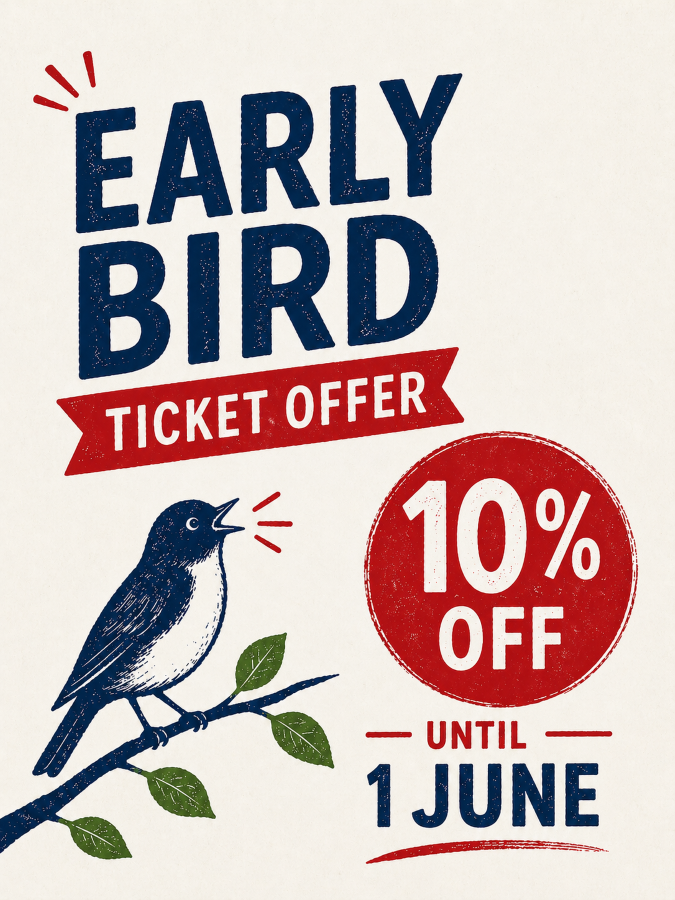 EARLY BIRD TICKETS are available until the end of May with 10% off….